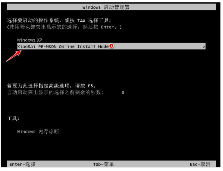 5、重啟電腦,我們選擇第二項xiaobai-pe系統進入其中。