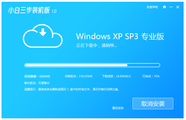 2、裝機軟件此時開始自動下載xp系統軟件和驅動程序。