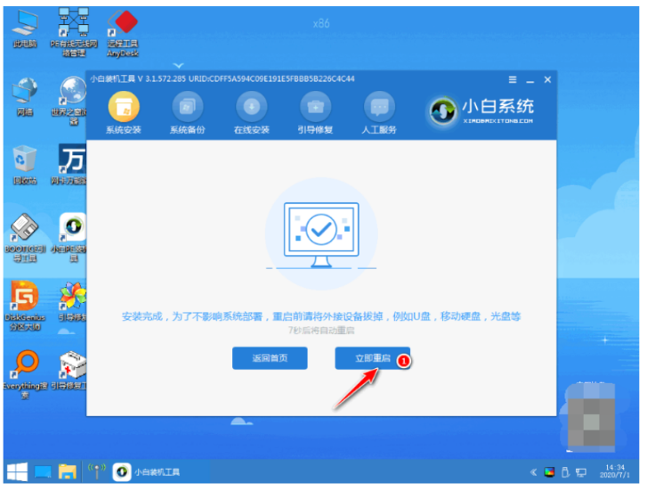 7、系統安裝成功之后,再次點擊立即重啟電腦。