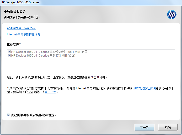 2、這時我們進入安裝協議界面,我們需要點擊左下角的我已閱讀并接受安裝協議和設置,然后再點擊下一步。