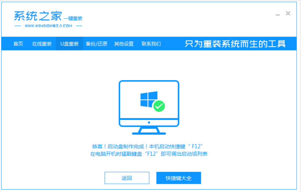 5、等待系統下載并成功制作U盤工具。然后拔出U盤并將其插入需要重新安裝系統的計算機。