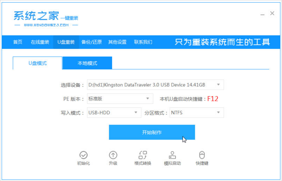 2、將u盤插到電腦當中,然后點擊”開始制作“。