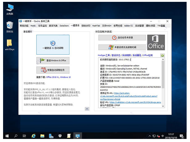 14、開始系統是未激活的,這時候需要用到激活工具“win10sys.exe”了,打開,選擇“一鍵激活”,點擊“激活”選項即可,如下圖所示:注意:在激活前,請手動關閉Windows Defender殺毒軟件,不然可就直接殺掉。