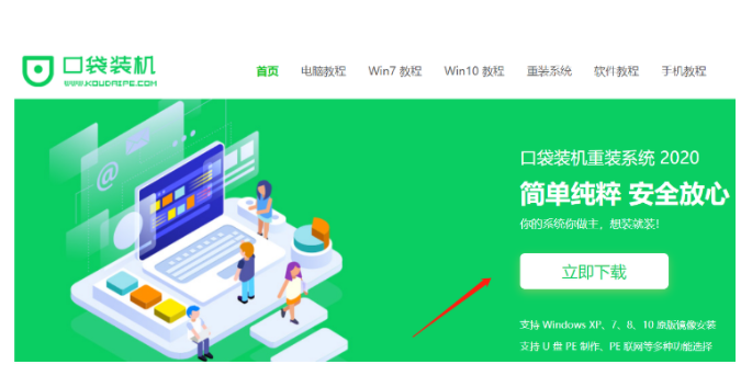1、下載安裝并打開口袋裝機的系統重裝軟件。