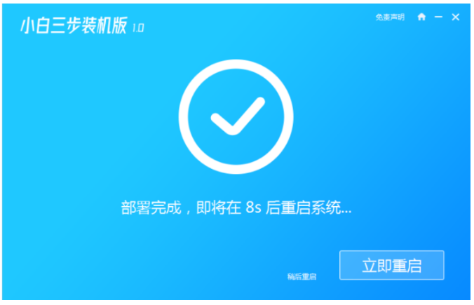 9、裝機工具會自動系統安裝完成,點擊立即重啟。