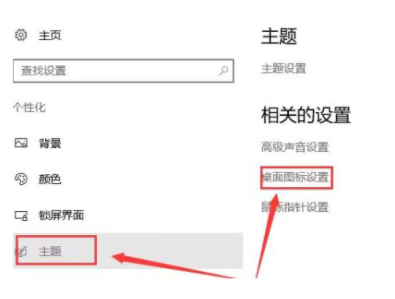 2.然后進入到新的操作頁面之后,在窗口界面的左側找到有個叫主題的功能,點擊它,接著在相關的設置選項功能欄界面中可以看見有個桌面圖標設置這個功能,選擇點擊進入。
