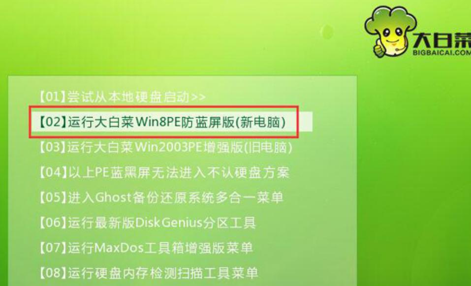 4.移動方向鍵選擇第二個大白菜win8pe系統。