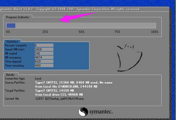 2、進入pe系統之后,此時將會開始安裝win7系統,安裝完成后,重啟電腦。