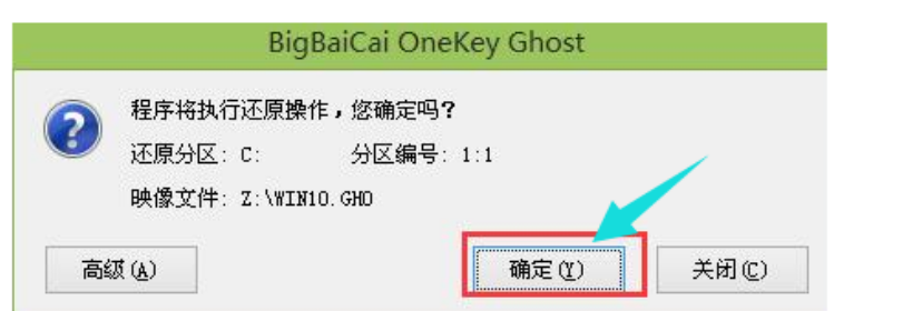 5.打開大白菜pe一鍵裝機工具,點擊“瀏覽”,將win10鏡像文件添加進來,選擇c盤為安裝盤,點擊確定。