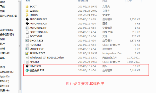 2、解壓完成之后,鼠標雙擊文件夾下的“硬盤安裝.EXE”。