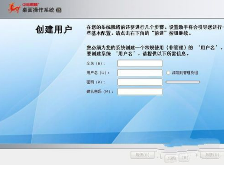 11.創健一個普通用戶賬戶,通過選擇“添加到管理員組”以創建一個管理員賬戶就可以了,這樣的中標麒麟操作系統就安裝完成。