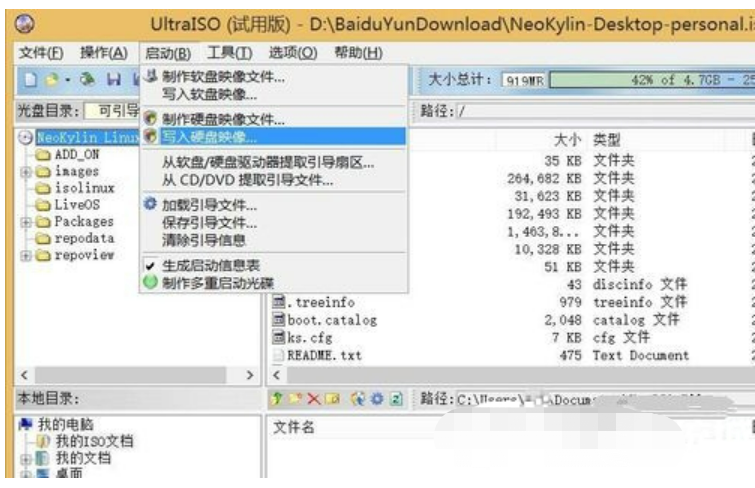 3.插入U盤(建議格式化一張容量大于4G的空白U盤),點“啟動”-“寫入硬盤鏡像”項以創建啟動U盤。