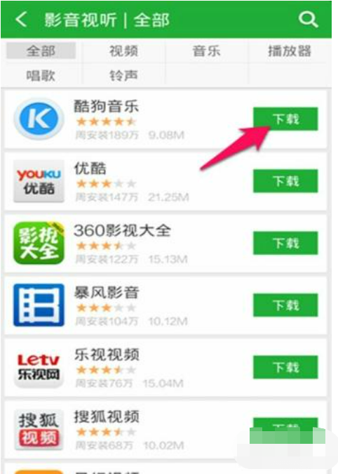 方法一:通過360手機助手下載安裝酷狗音樂手機APP