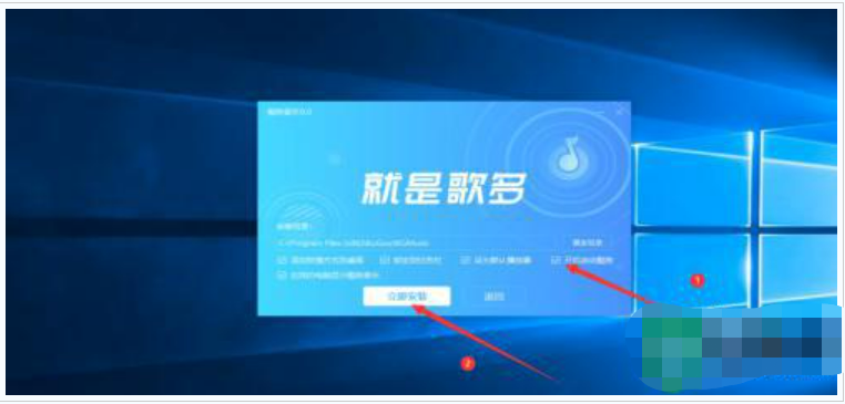 6、將“開機啟動酷狗”前面的“?”去掉。接著點擊“立即安裝”。