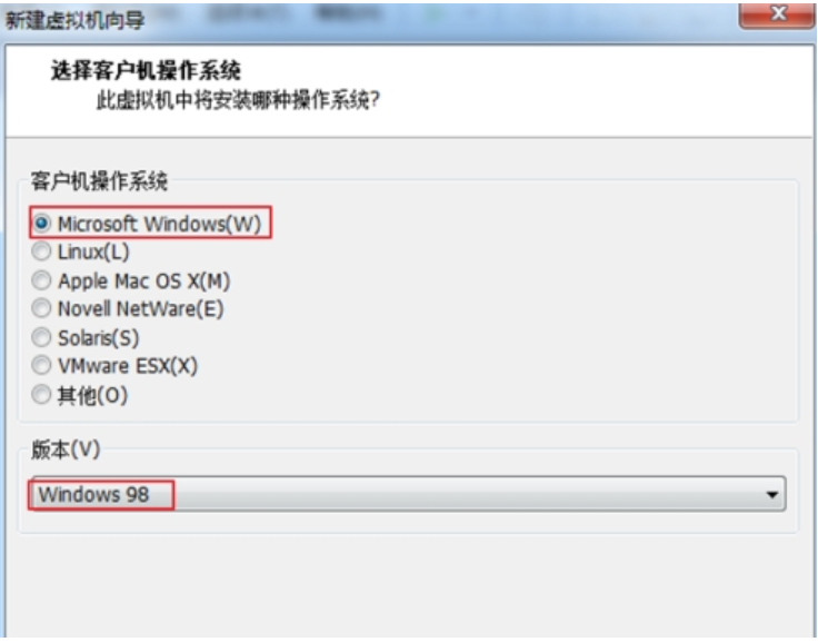 2、我們打開vmware軟件,點擊創建新的虛擬機其中客戶機操作系統選擇Windows 98 其他老樣子。