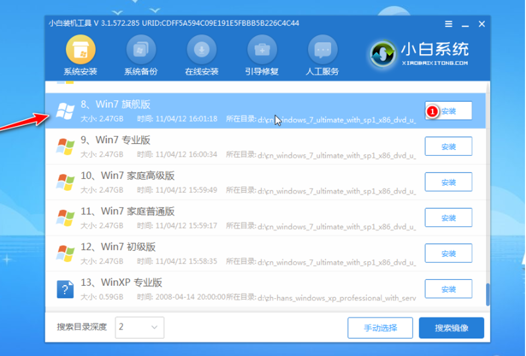 1、直接登錄”小白系統官網“,就可以下載安裝小白一鍵重裝系統工具官方版打開,選擇需要的windows系統,點擊安裝此系統。