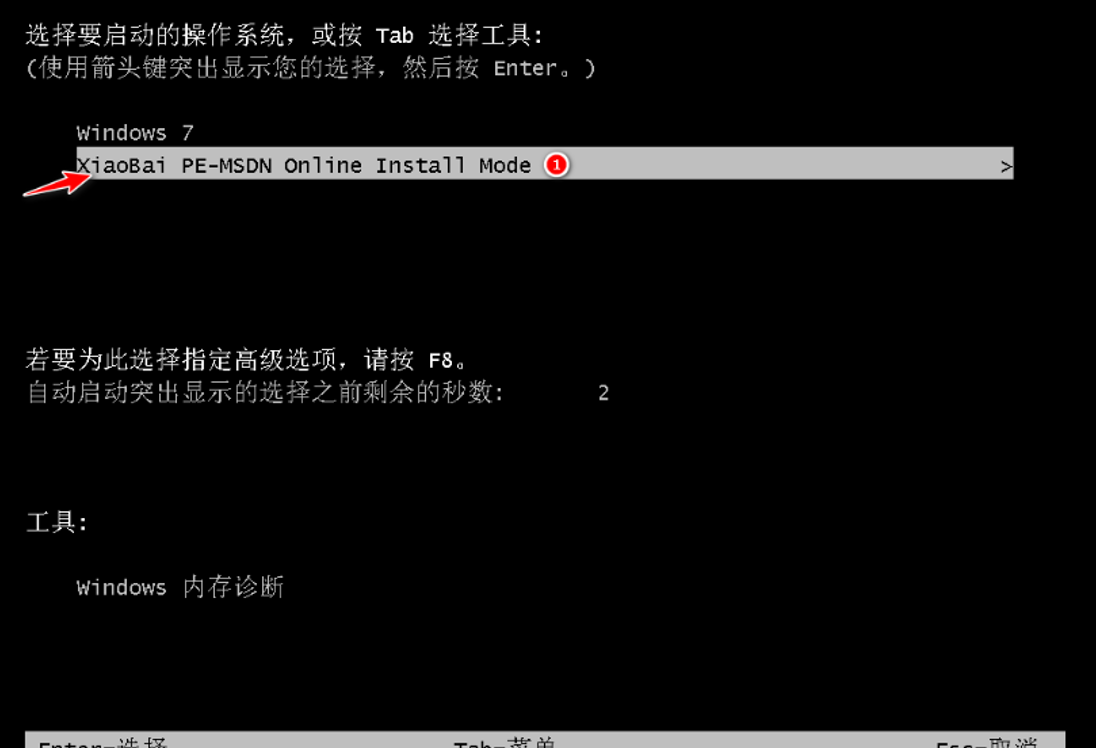 3、電腦重啟后進入了開機選項界面,選擇xiaobai-pe系統進入。