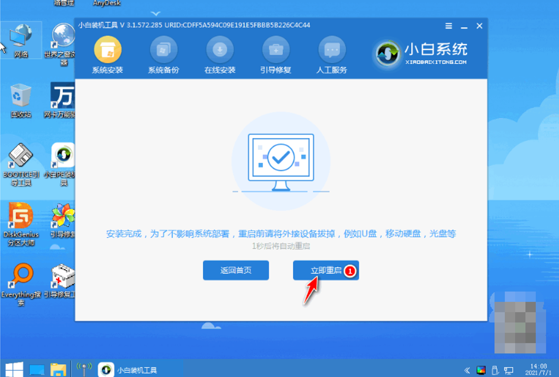 6、安裝完成后重啟電腦。
