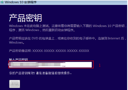 5、稍等一下,然后輸入產品密鑰,進行【下一步】。
