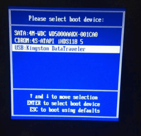 2.在開機啟動的界面按啟動熱鍵,在進入的界面中選擇我們的u盤名稱。