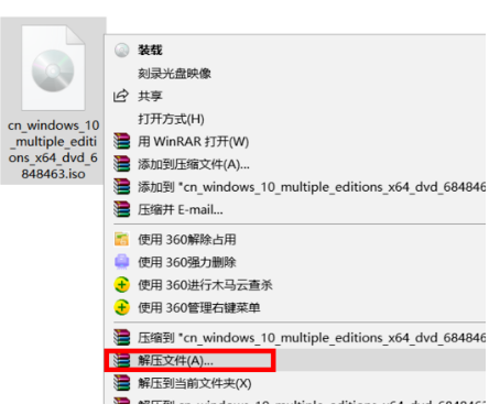 1、首先將下載好的Win10 iso鏡像文件進行解壓操作。