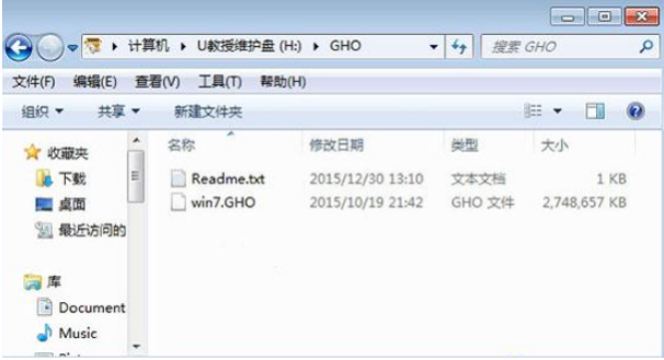 1、提前制作好一個U盤啟動盤,然后使用WinRAR等工具把win7系統鏡像中的gho文件放到U盤GHO目錄。