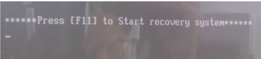 3、等待電腦重啟后,在出現圖中的英文時,按下F11鍵進入到一鍵還原精靈的DOS界面。