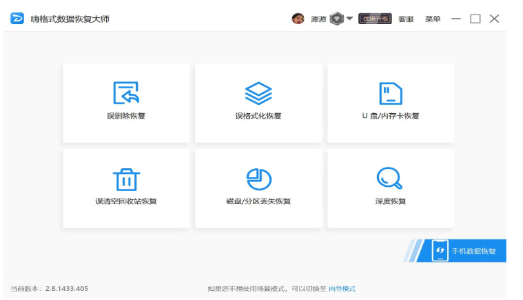 方法一:下載并安裝嗨格式數據恢復大師,雙擊打開,選擇軟件中的恢復模式。