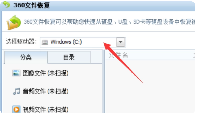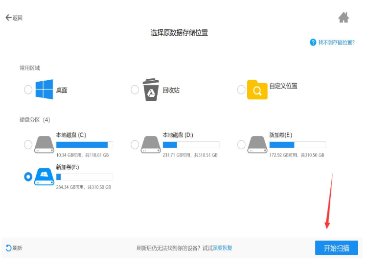 3、然后可根據實際情況選擇需要恢復的文件的驅動器。