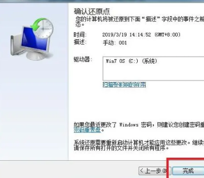 5、出現確認有關還原的詳細的信息,確認完畢后點擊完成,隨后就會開始還原win7系統了。