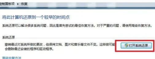 3、選擇打開系統還原。