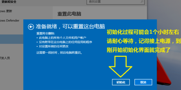 5.點擊【初始化】按鈕,等待系統還原。