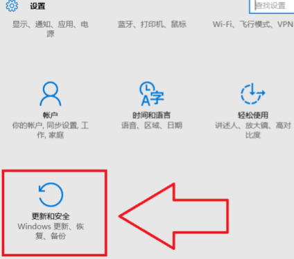 2.在設置里打開【更新和安全】。