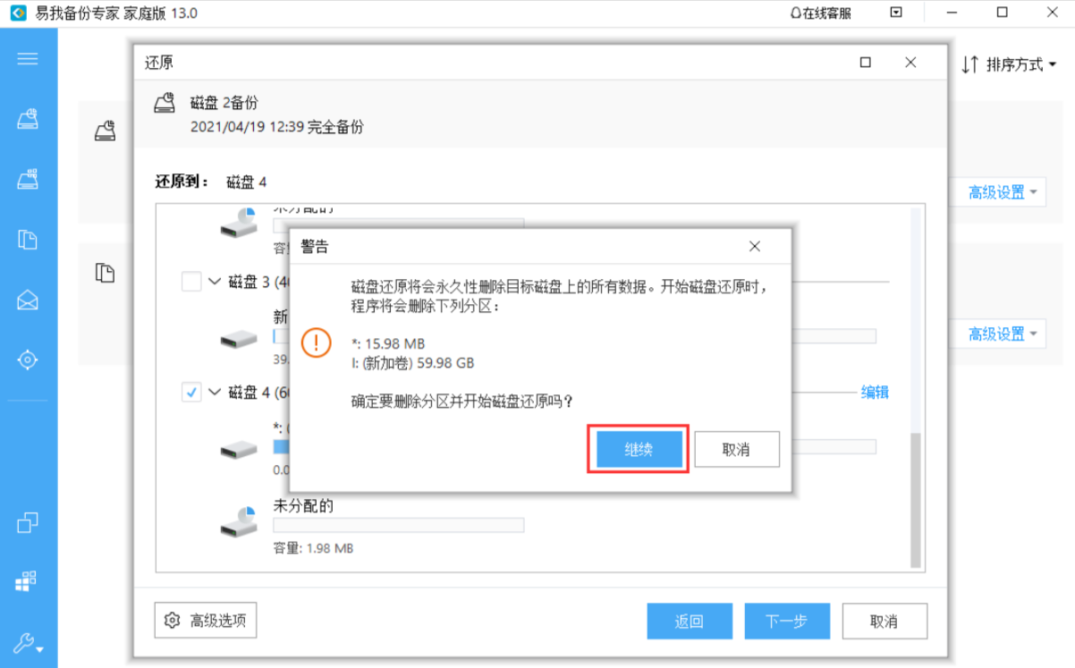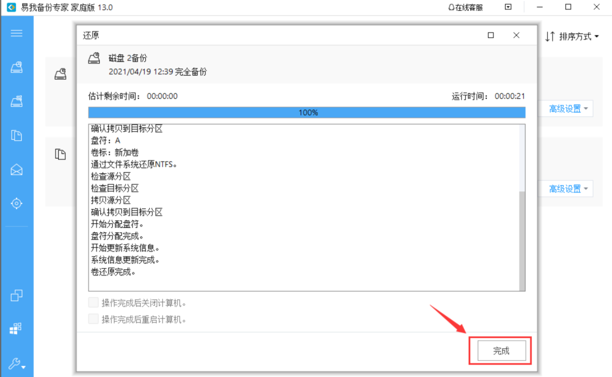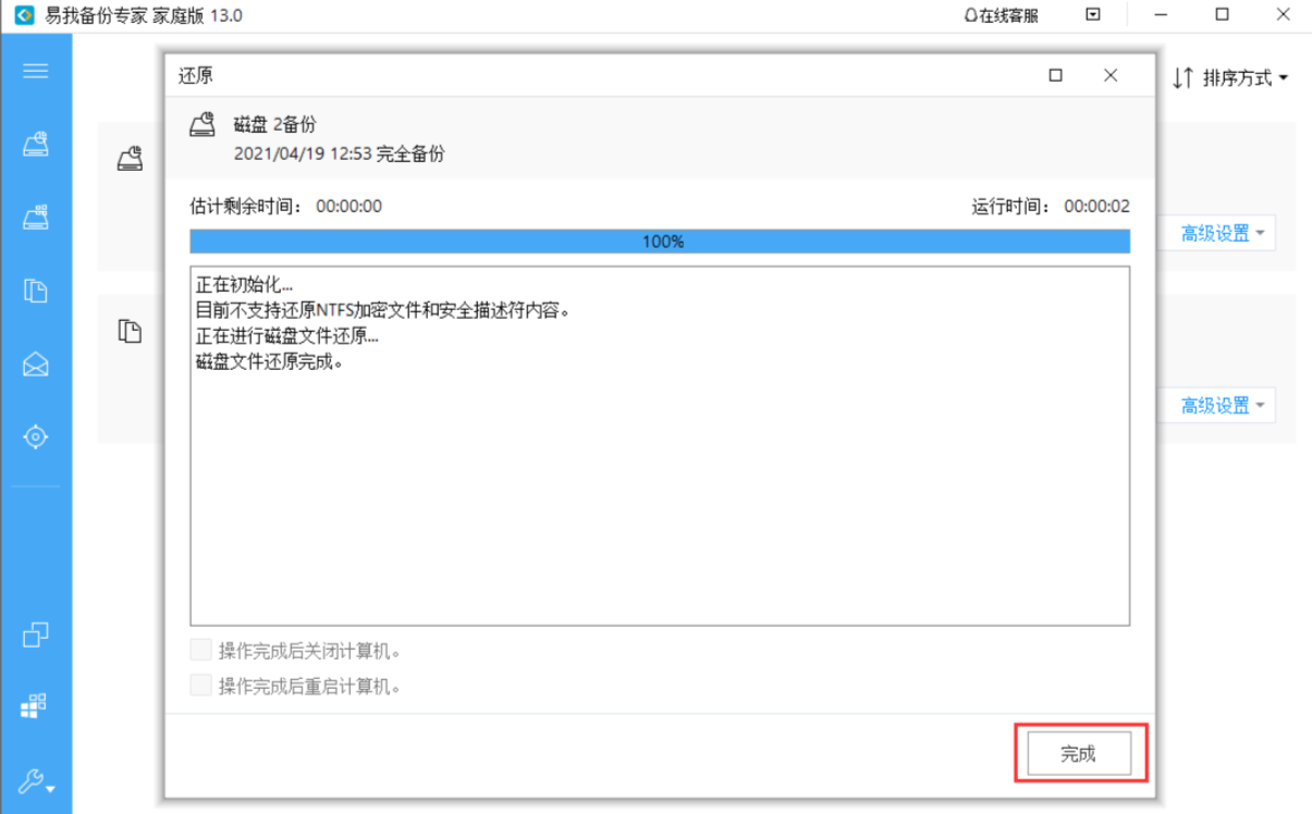 6、選中需要還原的備份任務,點擊“還原”按鈕。