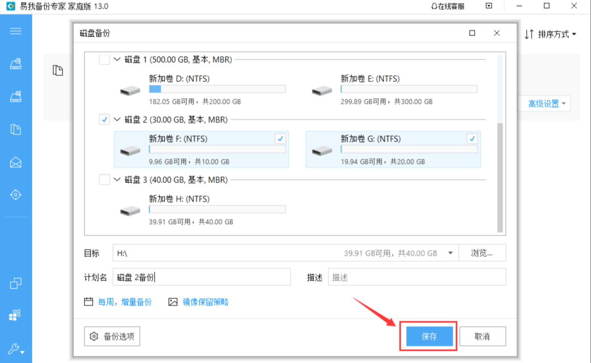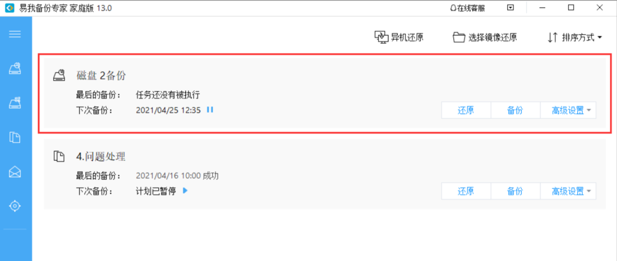 5、設置完畢后,點擊“保存”,在軟件主頁面板會列出本次新創建的備份任務。