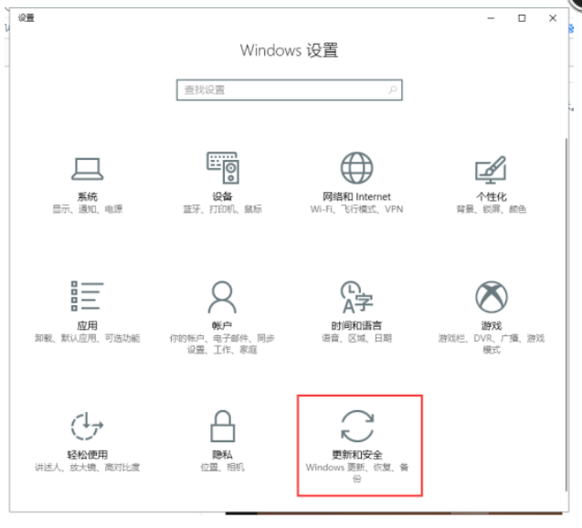 1、按快捷鍵Win+I打開設置界面,選擇更新和安全,下圖: