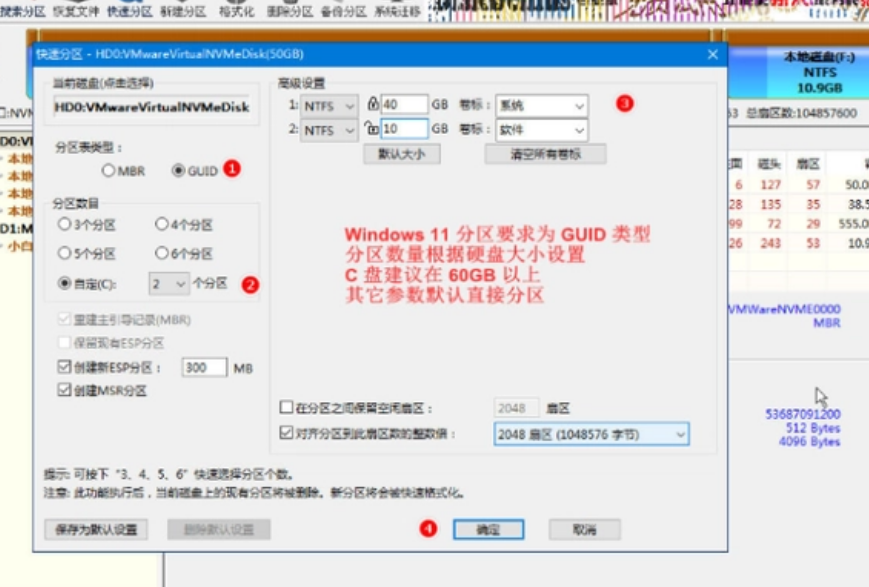 3.調整所需的主要參數后,分區工具會自動逐步系統分區,一般很快就能進行。