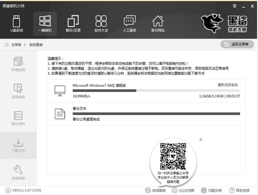 2、黑鯊裝機大師實現系統的快速下載,ghost技術,實現了系統的快速安裝,支持斷點下載續傳。