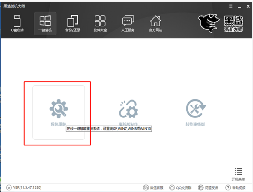 4、黑鯊裝機大師支持系統重裝方式多樣,可使用一鍵重裝系統,同時可制作U盤啟動盤進行U盤重裝。