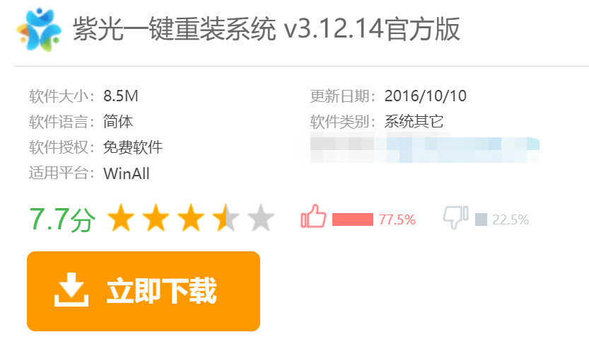2、點擊立即下載打開紫光一鍵安裝系統。