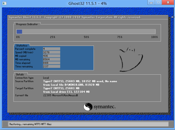 4、還原操作結束后,電腦會自動重啟,并且自行給華碩筆記本進行安裝。