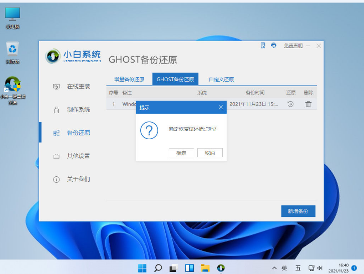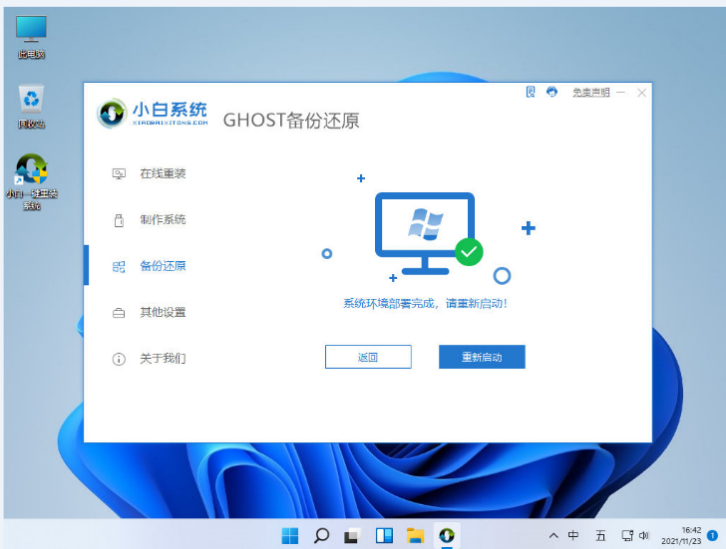 1.如果我們已經用小白重裝了新系統的話,就不可以還原回原來的舊系統了哦。如果大家還是想用小白系統還原系統的話可以借用別的工具完成。