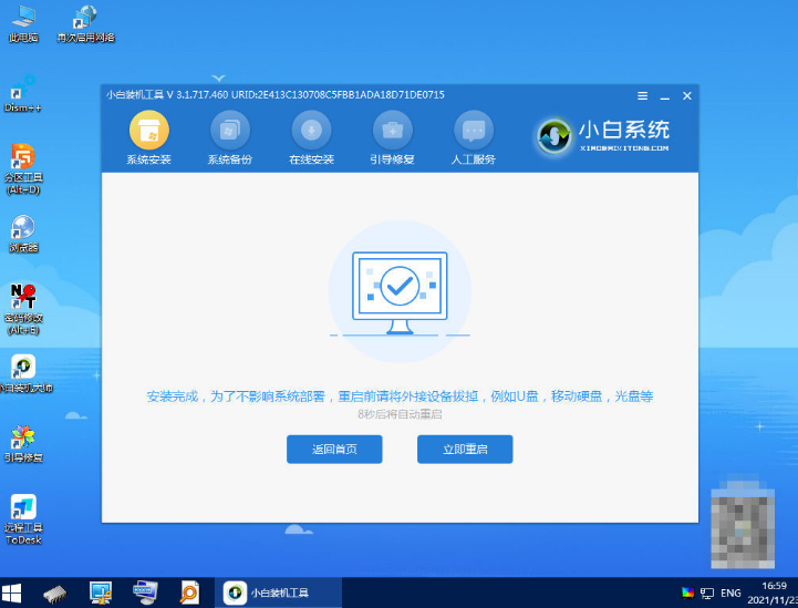 7、系統安裝完成之后,再次點擊立即重啟電腦。