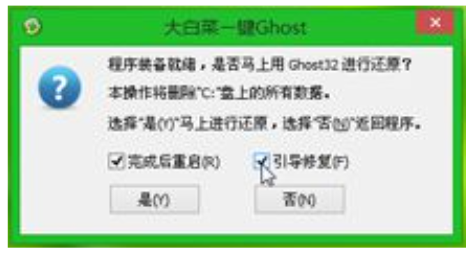 8、勾選“完成后重啟”和“引導修復”,點擊是開始執行系統重裝過程。
