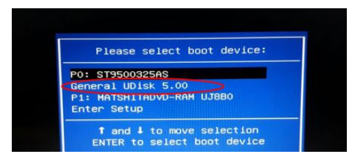 2、插入U盤,重啟后不停按F12或F11或Esc等快捷鍵調出啟動菜單,選擇U盤選項回車,不支持這些查看第二點設置U盤啟動方法。