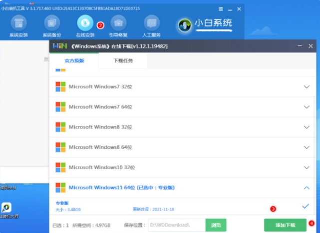 4.硬盤分區后,我們打開安裝工具,尋找在線安裝,選擇我們想安裝的系統鏡像文件。此外,我們可以在免費下載后等待。在實施此步驟時,我們必須保持互聯網暢通,我們不能半途而廢地關閉電源待機。如果計算機在一開始就沒有網絡pe免費下載系統鏡像文件。