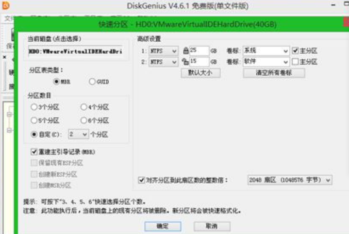5、設置分區數目和分區,C盤建議35G以上,若是固態硬盤,勾選“對齊分區”即可4k對齊,點擊確定,執行硬盤格式化以及重新分區過程。