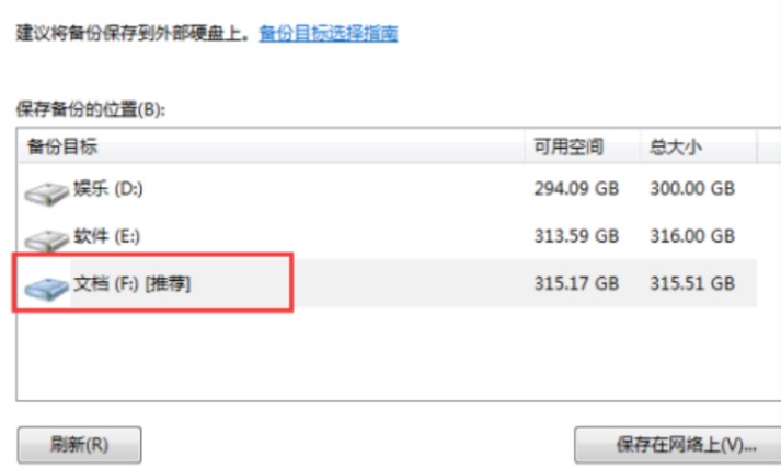 3、選擇要備份的到哪個磁盤,然后保存設置并運行備份即可。