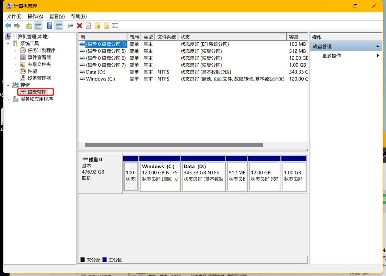 3、接著我們就可以看到右下角深藍色為主分區,而深黑色的為未分配,所以,我們可以右鍵“新建”即可。