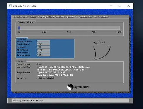 7.系統備份完成后,將會再次重啟,自動進入系統安裝界面,這時等待系統安裝完成。